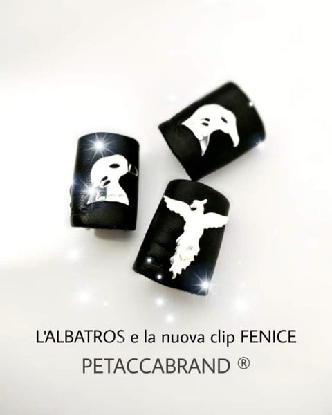 Le clip per capelli sono realizzate in cuoio e argento 925 nichel free interamente a mano, disponibile con Albatros o con Fenice.