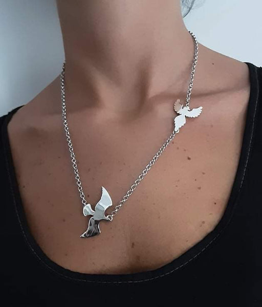 Collana Albatros/Fenice, i due ciondoli realizzati rappresentano libertà e rinascita.