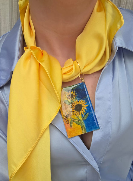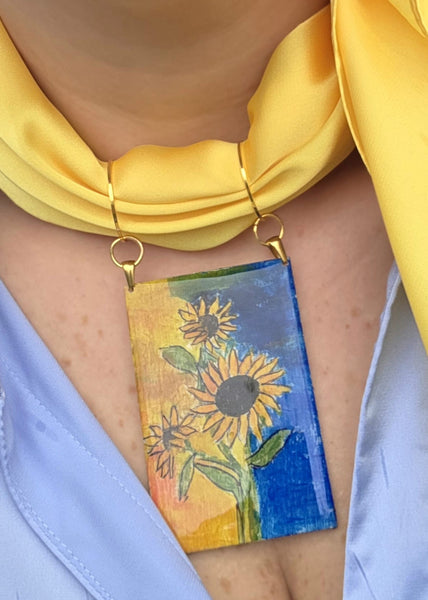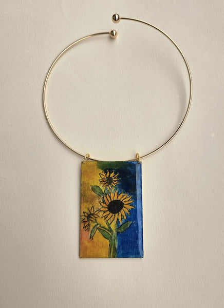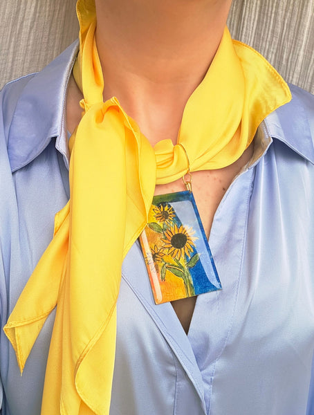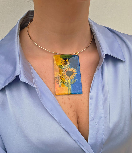 Splendidi e luminosi girasoli, iconici rappresentati da tanti artisti, la nostra rivisitazione per omaggiare il fiore per antonomasia, simbolo di gioia, solarità è decisamente un collier che arricchisce anche i look più casual.